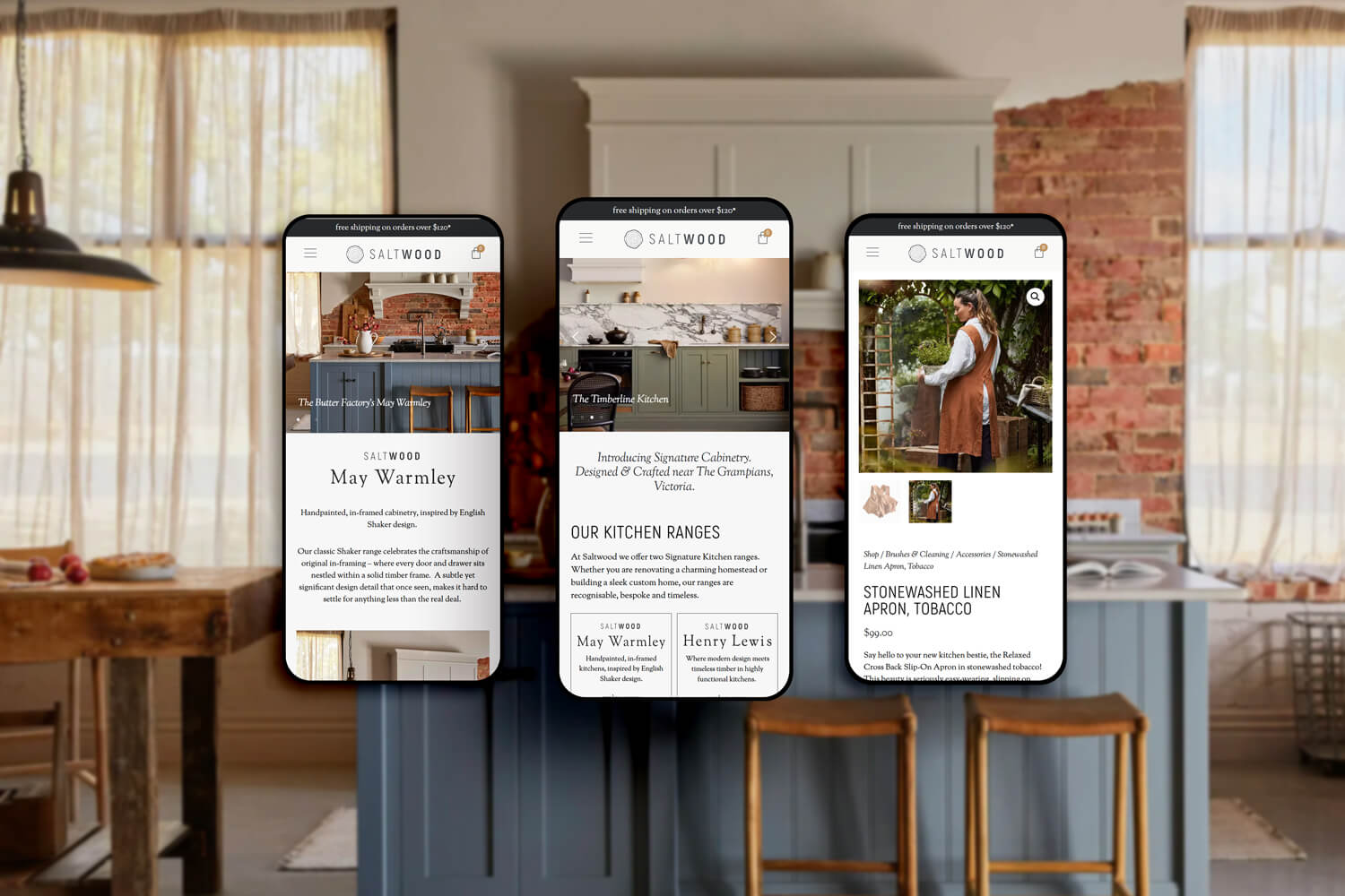 The objective was to create a refined digital presence that would position SALTWOOD as a sought after name in bespoke kitchens and bathrooms, while also introducing a fully functioning online store and journal. The site needed to feel timeless and grounded, letting the imagery lead, while clearly guiding visitors towards booking a consultation.
